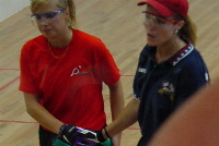 Michel had been working with [Ceresia/Green] all week. I think that in the beginning, since these guys are a veteran team, they had worked out good strategies for themselves. But Michel kind of intervened, and he's a great tactician. Michel gave them some really good strategy. It was the same strategy they used against the Mexican team. We had to compensate for having to left handed players, while playing two good teams with a left and right handed player. We had a lot more play in the middle. Better serves. Much better execution. They executed in the last two days. They got us past Mexico and finished it off against the United States. I have to say that I was really pleased with everybody's performance. We haven't always come to these and had solid performances straight through, but the younger girls I know will learn from this. And I know they will be there again. We are looking at the beginning of two very good careers. Christie is always very tough, and plays like a champion every time. But L-J, to me, was the biggest surprise of this tournament. I know she's been working really hard, and it paid off. She took Cheryl to a tiebreaker. She took Jackie to a tiebreaker today, which was the difference in the games between us. I will give L-J credit. She believed in herself. She worked hard. And it probably is beginning to pay off right here. Our selection process is different than what you have in the U.S. You have your nationals. We have our nationals, and then we have two selection events, in January and February, where we play singles in one and doubles in another. People who make the team now, it's a cumulative effect from those two events and nationals. And then we will usually run a training camp. And there will be tournament opportunities throughout the year, for not all of them, but for a good deal of them. [The players] are spread across the country. We get together about six or seven times a year, usually for an event. I have seen some incredible things, but this would be hard to surpass. We have had some great racquetball players who have finished second to the U.S. their entire careers. Today is the day that everyone on this team can say that they were the best in the world. And I think its going to happen to them again. I think we should get used to winning. |