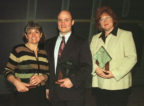 On hand to accept on behalf of their facilities were (l-r): Marianne Alonzi (LAC), John Marchetti (Alaska Clubs), and Margaret Pederson (ClubSport). Photo: www.photogroup.net. |