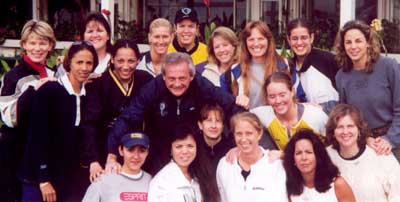 Surrounded by the LPRA athletes, Jim Hiser says goodbye to the women’s tour in Mexico. New duties as USRA Executive Director will keep him too busy to continue to direct the tour, so the Rosarito stop was his last. Ed Willis took over as LPRA commissioner at the following tournament in Chicago.