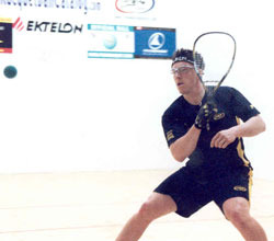 Catalog.com Pro Fest there were those who doubted Sudsy’s capacity to overcome his injuries from last year. There were those who wondered if he would ever be a consistent force on the IRT pro tour again. The people asking those questions were about to get an answer. The challenge started early. On arrival at the Family Fitness and Racquet Club in Broomfield, Colorado, Sudsy was pulled aside by a tournament director. There was a rumor floating round and it seemed only fair for Sudsy to hear it straight up. In a nutshell, some were saying Sudsy’s natural athleticism was working against him. His accomplishments had always come easily. That being the case, he didn’t have the desire, dedication, or work ethic to come back and be a champion. Sudsy conceded he’d heard inklings of the same remarks. Champions love a challenge. It was from this conversation that the “mission” began. The two agreed that Sudsy was to remember those statements before every match; a silent reminder as he stepped on the court. “Has-been” … “quitter” … “not tough enough.” Fightn’ words. Those who didn’t believe, might by the end of the tournament. Qualifying for the Pro draw is always interesting, as top amateur players vie for a spot in the main draw. Big names are a target and a chance for some recognition with an upset. The only one with something to lose is the pro who has to work his way in. And that’s where Sudsy had to start, since his ranking points had plummeted during his recovery through most of last season. Technically, his wins were upsets, but a better term might have been “feeder fodder.” Two qualifying rounds; two quick workouts. From there things got quite a bit tougher. Going into the round of 16, Sudsy had to deal with another early-round hazard of “starting at the bottom” in facing one of the toughest players on the tour, IRT Pro Nationals champ, John Ellis. As you can imagine, it was a grueling five-gamer — (8), 9, (3), 2, 7 — and one of the best matches of the tournament right off the bat. In the meantime the other top seeds, Jason Mannino, Kane Waselenchuk, and Cliff Swain advanced on cruise control. The quarters had Mannino, Kane and Monchik all taking care of business in relatively short order. Sudsy dispensed of Jack Huczek in a straight-game match for adults only. It would appear that Sudsy and Jack don’t bring out the best in each other, and there were as many personal shots taken as those with the ball. Jason took care of Derek Robinson in three, while Kane whupped up on Rocky Carson in much the same way. Where Sudsy had survived a big battle in the previous round, it was Cliff Swain taking on that chore in the quarterfinal. His nemesis was fellow-southpaw and USRA men’s open champion Mike Guidry, who showed that he has the skills to take anyone down in the right time and place. And it was darn near “right” in both ways, as he gave Cliff all he could handle. When the dust settled it was Cliff still standing with a 3, (8), (1), 6, 5 victory. At this stage of the game you’d think things would get much tougher. A semifinal with three solid Hall of Fame prospects, and a kid who might eventually be best of the lot? Yep, that’s what you’d think. Against Canadian wunderkind Waselenchuk (for the big match that wasn’t) Mannino took control early and often, to win quickly, 5, 6, and 3. On the other side Sudsy’s personal mission stayed on track. Sudsy and Cliff have only faced each other about a 100 times this century, and generally you can be guaranteed a dogfight. This time there was no abuse, no antics. Sudsy’s game had been picking up pace and Cliff appeared not to have recovered from the Guidry marathon. With the two vastly different approaches, Sudsy ran away with the win, 2, 8, and 6. Thus … the finals between Monchik and Mannino. Good friends, good players, neither wanting to give the other an inch. Both willing themselves to get seemingly irretrievable shots, both giving their all. It was a classic battle. The big difference? One was on a mission, one wasn’t aware that there was a mission. It was only fitting that it would go back and forth in the first four games, and end with the last game going down to the wire: the 13-11 final went to Sudsy. As friends will be, both were gracious in their assessment of the match and their opponent’s skill. The mission was over. Objective completed. Sudsy was back on top and he had done it the right way — he let his actions speak louder than words.