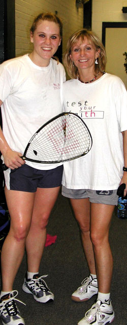 (Tracey "five years") Has it been that long? Holy cow. Five years apparently. Actually I met my friend Tracey, my best-est friend, playing racquetball. She said that we have known each other for five years and that's whenever I first picked up a racquet, so it must be five