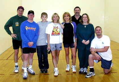 I play with my best friend Tracey (Graves), my husband Dale (Wesson), John McCauley and we have a Saturday group. On Saturday mornings we got out and there's a whole bunch of people and play in that Saturday morning group. It's getting so it's hard to even get a court. We play doubles mostly and we just interchange people. But John McCauley, Dennis Stinnett, Dale and Tracey are the four people that I play with the most. And nobody treats me any different at all, I'm still just Tina to them. It's still very much just a competitive racquetball group and we love to just get in there to compete with each other.
