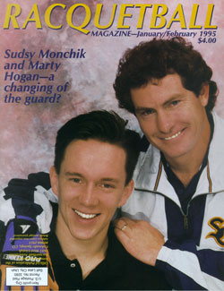 Well, what’s that “history, and being condemned to repeat it” thing? Perhaps we should dirty our hands with a little newsprint ink. Inside the pepto-issue we covered the one-time-only National Outdoor 3-Wall Championships in Florida (winners Brian Hawkes & Martha McDonald); the Junior Olympics (winners John Ellis & Elkova Icenogle); the original U.S. Junior Team Trials and “diaries”; PARI instructional; and announced the new hire of Membership Director Kevin Joyce (with mustache). Ohio’s Doug Ganim and Elaine Hooghe topped the Open rankings, and Luke’s column described the most exciting time in our sport’s history(!). Our full-page advertisers were E-Force, Ektelon, Leader, and camps by Fran Davis (with Stu Hastings) and Jack Newman. Everyone looked