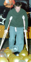 In fact, Sudsy stepped on a rock in his driveway, turned too quickly in recovering his balance, and fractured his fifth metatarsal. “I have what they call a Jones fracture,” Sudsy explained. “It’s a very slow-healing fracture but it’s also a non-weight bearing injury. That means that I can’t put any weight on it at all or it could make the recovery a lot longer.” Sudsy did make an appearance at the tournament (shown left, on crutches, at the banquet), but admitted that it was a little weird for him to sit and watch — and a little hard too. “I haven’t done too much watching at the U.S. OPEN; you can just look at my record at that tournament for the proof. I trained harder for this year’s OPEN than I have for the previous five. I am just real disappointed.” Sudsy was able to keep the injury in perspective, however, partly because he lives in New York, where there’s been so much unrest. “I wouldn’t use the word ‘devastated’ for how I feel. There are a lot worse things happening to other people right now. I am just in disbelief about the whole thing.” Sudsy’s injury will keep him sidelined for a minimum of eight weeks, making it nearly impossible for him to hold his position and reclaim the end of season IRT top ranking. But if anyone can do it … it would be Suds.[Photo: Vicki Hughes] |