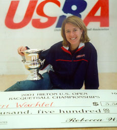 Did you know that your mom would be flying in to see you play in the finals at the U.S. OPEN? You know, she does that a lot. I knew, well she didn't tell me she wanted to surprise me. She's done that a lot of times like for birthdays when I was in college she'd come in. She did that when I was in the finals at intercollegiates. I kind of had a feeling that she would do that. It was the biggest win of my life and I don't think she would have been able to live with herself if she would have missed it. How did it make you feel to be able to look out of the back of the court during the finals and see your mom and Chris sitting there rooting for you? I think that my family and my husband are the reason that I am doing so well this year. If you look at last year, I was working doing advertising, a 9 to 5 job. I would get home and be so tired that I wouldn't want to go to the gym. Now I have this amazing job where I can work out. I can sit and talk strategy with my boss all day long in the office. I have an incredibly supportive husband who wants me to go and do everything that I can in this sport. My family is 100% behind me to and they are able to travel with me, which is great. I don't think that I could have more things in my corner than I do right now. When you beat Cheryl Gudinas in the semifinals at the U.S. OPEN she broke down and said some very nice things about you. What did her words mean to you? I think she was so sincere. Cheryl has beaten me a gazillion times and I have beaten her once, well twice now. I beat her about three years ago in a local tournament. I think that it was hard for her to lose because she was coming off seven wins in a row and she had a lot of pressure on her because of that and being ranked No. 1. I think she handled it so graciously and I think that shows what a true champion she really is. How did you feel going into the U.S. OPEN? I was confident. I went in there with the feeling that I had nothing to lose and I just wanted to go and give it my all. Each match I had a game plan. I just wanted to stick with my game plan and not skip. In the LPRA it is deadly if you skip and I just wanted to not skip and stick to my game plan. After defeating the No. 1 player in the semifinals you had to face former U.S. OPEN champion Jackie Paraiso-Rice, another player who could be, and has been, No. 1. Were you worried that you would be satisfied with beating Cheryl? I wasn't really worried about being satisfied because this was the biggest match of my life. I was really getting up for it. I wasn't worried about being satisfied. I left the semifinal match on Saturday and it was, you know, it was yesterday. I prepared for a whole new match. My body was fresh. I didn't even think about the past. All I could think about was the present and the future. When Doug Ganim introduced you at the U.S. OPEN he dubbed you the fastest rising star on the LPRA tour. Would you say that is accurate? I guess you could say that I am the fastest rising star because I moved from I think like 28 to 3. It just goes to show me that hard work and dedication pays off. I think that if I keep doing what I am doing the sky's the limit. Is there a big difference between playing on the tour full time and just training? When I wasn't playing on the tour full time I still worked out everyday but I didn't have the time to dedicate towards hitting. Now I do a lot more. I can go a lot more into detail with my workout. I have so much more time to work out longer and play. I just have every opportunity. I have four racquetball courts 20 feet from my office. Do you plan to play full time on the tour next year as well? Oh yeah. Full time and hopefully No. 1. You said after the U.S. OPEN that your goal for the year was to win a pro stop and now that you have you would have to reexamine your goals and set new ones. What are the new goals that you have set for yourself? I'd like to maintain a top 3 ranking this year and win two more pro stops before the season lets out. Oh, and I would like to have a strong finish in Houston. Does that mean that making the U.S. National team is one of your goals? It is. I was on the National team in '94 after I won intercollegiates but I really didn't get to do much with the team. I would love to be on the team. Since I have been around all these girls all the time that have been on the U.S. team I have heard so many stories about their international competition and international travel and all of the camaraderie. I would love to represent the United States, especially at a time like this. With everything that is going on in the world right now I think it would be amazing. Where do you see yourself at this time next year? This time next year? Hopefully I will be No. 1. That's my goal for next year, to be No. 1. I'd like to improve my game a little bit more. Maybe I can do that in the off-season. I'd like to defend the U.S. OPEN title and win it two years in a row. And basically just finish No. 1. In closing is there anyone that you would like to thank or mention? Of course my family and friends. As I stated before, my husband and my mom are the main reasons that I have had success on tour. Of course Team Butch; if it wasn't for them I wouldn't have met my husband. I also think that another reason that I have had success is that I switched companies and Ektelon has been more supportive than I ever could have imagined. I love playing with their racquet and I really think it has made a difference in my game. I work for Five Seasons Country Club in Cincinnati and they have given me every opportunity to take my game to the next level. My boss, Craig Boynton is so generous to give me the time that I need to train and the time that I need to travel. I couldn't ask for a better situation. He has been incredible not only to work for but he also has helped me when I am preparing for a tough match. I'll call him and he will give me some advice. The support I have from all aspects of my life is