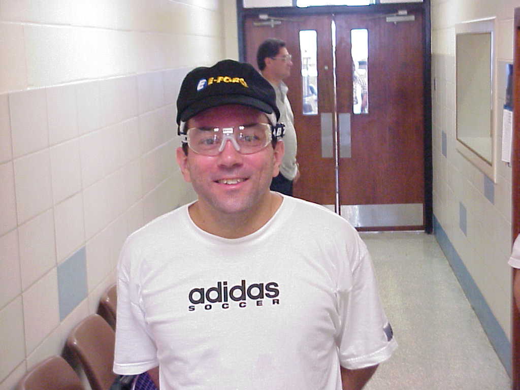 SAN JACINTO JR COLLEGE recognizing the need for exercise facilities in a city (Houston) that has just been awarded the dubious honor of first place as the fat-est city in the U.S, a country where the Morbidly Obeisity ratio has risen has risen to 25%, has opted to open it's doors for Community Access to it's Racquetball facilities. Kicking off the drive to create a Community Racquetball Access Class was the BALLYHOO RACQUETBALL REUNION SHOOTOUT which, in order to keep it simple, was organized with a challenge court format. Invitations were forwarded to the 200 players that had petitioned a national fitness club not to destroy its' courts(4 years earlier), to the folks who had appealed to the local club to repair it's rain damaged court(4 months earlier), to local new players, and to San Jacinto students. Court 1 was Singles Challenge, Court 2 was Doubles Challenge and Court 3 was Challenger's Choice. The challenge sign up sheets were posted outside each court, and the tournament coordinator ran down the halls like a "town cryer" heralding the plea: "LET THE GAMES BEGIN !" BUT begin they did not, at least not right away. The real purpose of this event took over immediately. The players started catching up on old times, renewing old friendships, finding out how each other had fared in the four years since they played each other every week at their old club, who had new kids?, new jobs?, new directions in life?, Each time another "old face" appeared it started a new round of reacquaintenceship and sheer joy ruled. What this event was really all about was giving the guys a place to play, it was letting the guy who had family obligations that would not allow him to drive 50 or 80 miles round trip three times a week to get some exercise, it was to help him continue to compete in a game he loves against good friends that were an integral part of his life, to keep up longterm friendships, to let out the steam of a busy and taxing workday, to maintain his health, and to do all that at a reasonable cost. It was all about turning glum faces into ear to ear "Cat that swallowed the canary" grins. COMPETITIVE JUICES did not, however, remain suppressed for long. Statements like: "It's been too long since I whipped your butt!" were soon heard. Individual challenges were levied, teams formed up, players signed up, and the wars were on. Matches would be 2 games to 11 with a most points tiebreaker. The 2nd tiebreaker was a 1-point "sudden death" with first serve decided by coin flip. Winners would retain the court for up to three matches. From that point on things settled down to just plain out and out fierce competition. The San Jacinto College Staff registered players, for the new COMMUNITY RACQUETBALL ACCESS membership program, and distributed game balls provided by PENN RACQUETBALL. The players had fun, exchanged contact information and, set up games for the future, the SHOOTOUT INSTIGATOR could clown around in front of the E-FORCE display and prize table and Ralph Smith and Steve Cowans who were the tournament coordination committee without whose efforts this thing would never have flown, could finally get to play too. Everybody had a blast, and … RACQUETBALL DIDN'T LOOK LIKE A DIEING SPORT |