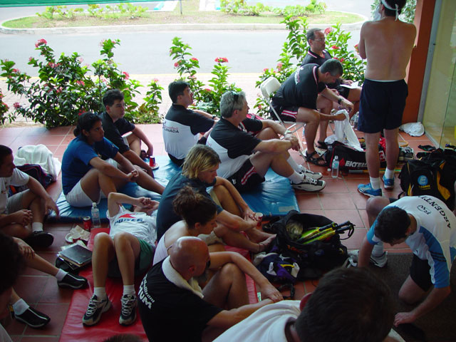 ranging from sole athlete representatives, to full squads of singles and doubles players from all corners of the globe. Four days of individual play, in the Olympic “compass” format, comprised the first half of competition, followed by a day off and three more days of full team playoffs. Beautiful San Juan, Puerto Rico was the backdrop for an international event that may not return to an American continent until 2006. It is scheduled for Seoul, Korea in 2004.