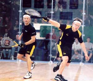 his longtime friend in four spectacular games of 12-10, 11-9, 7-11, 11-3.