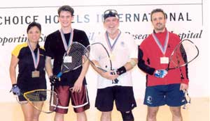 Even though they were runner-ups, Jackie Rice (San Diego, Calif.) and Jake Brandyberry (Cleveland, Ohio) still enjoyed the event. “I had a great time playing with Jake,” said Rice, currently ranked No. 2 on the Ladies Professional Racquetball Association [LPRA] tour. “It’s not only fun but for a good cause.”