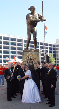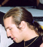 44], and recently filed the following report … "I am happy to share that it was just harvest time. The second harvest for me now. What am I harvesting? Hair. That's right, HAIR! In the first part of 1999 I cut off 25 ponytails of long healthy hair, and donated them to the Locks of Love Foundation in Florida. They take hair donations and turn them into wigs for the many children that undergo cancer treatment, which causes the loss of hair. Once again, four years later, I found myself with a head full of new crops. So call me a hair farmer … I did it again. This time I am living in India, and the idea of helping is always coming up. The yield was a strong 29 ponytails all at the 10-inch minimum. This harvest once again has made me a Bald EAGLE. It is always fantastic to be a part of the energy flow. Pass it on! (even if it is attached to my head) Buddha spoke of non-attachment, right?" [Photo: Vicki Hughes, ‘98 U.S. OPEN] |