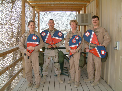 The “Patriot” frame is a bit hit with soldiers in the middle east. Barb Faulkenberry [2nd from right] reports: "We have two racquetball courts here at Prince Sultan Air Base in Saudi Arabia. Both are in pretty battered shape, but they are used 24 hours a day! Everyone here works at least 12-14 hours a day. Some folks get one day off out of seven. Somehow a lot of us always find time for a little racquetball!”