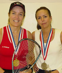Only a handful of players had a chance at two gold medals on the final day of competition at National Singles this year. It’s a grueling week and easy matches, no matter what division, are hard to come by. Making one final is hard enough; two is nearly impossible. Solanna Taragan and Anita Maldonado each made two finals in full single-elimination draws, and even faced each other in one of them. RACQUETBALL caught up with them after their 35+ match (which Solanna won 14-14, 15-12, 11-8), to get their views on making two finals at perhaps the hardest tournament of the year. “We train hard to do this and this is what it is all about,” said Anita [top left] who earlier lost her women’s 40+ final to Malia Bailey. “Making it to one final is hard enough, but to make two finals is an awesome feeling.” “I think it’s too risky to come here and just play one event because you could lose early with all the talent here,” Solanna [bottom left] said of her decision to play both the women’s 35+ and women’s Elite. “But, if you keep going in both draws you are dead by the end of the tournament.” Anita agreed and had no regrets about playing two divisions even though she was exhausted before playing in her second final of the day. “I would do it the same way. It was fun,” she explained. “You can’t come out here and play just one event unless you are Cheryl Gudinas and feel that you are going to win the Open.” Solanna ended up losing her Elite final to Teresa Beresford, but was still elated with her performance in Houston. “I think the women’s 35+ draw is very prestigious,” she said. “This is the tourney of the year. I know some people are saying that the (U.S.) OPEN is, but the best players come here every year.” |