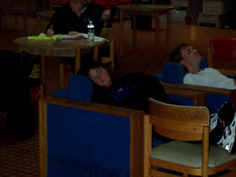 Teri Brauer catches a few zzz's between